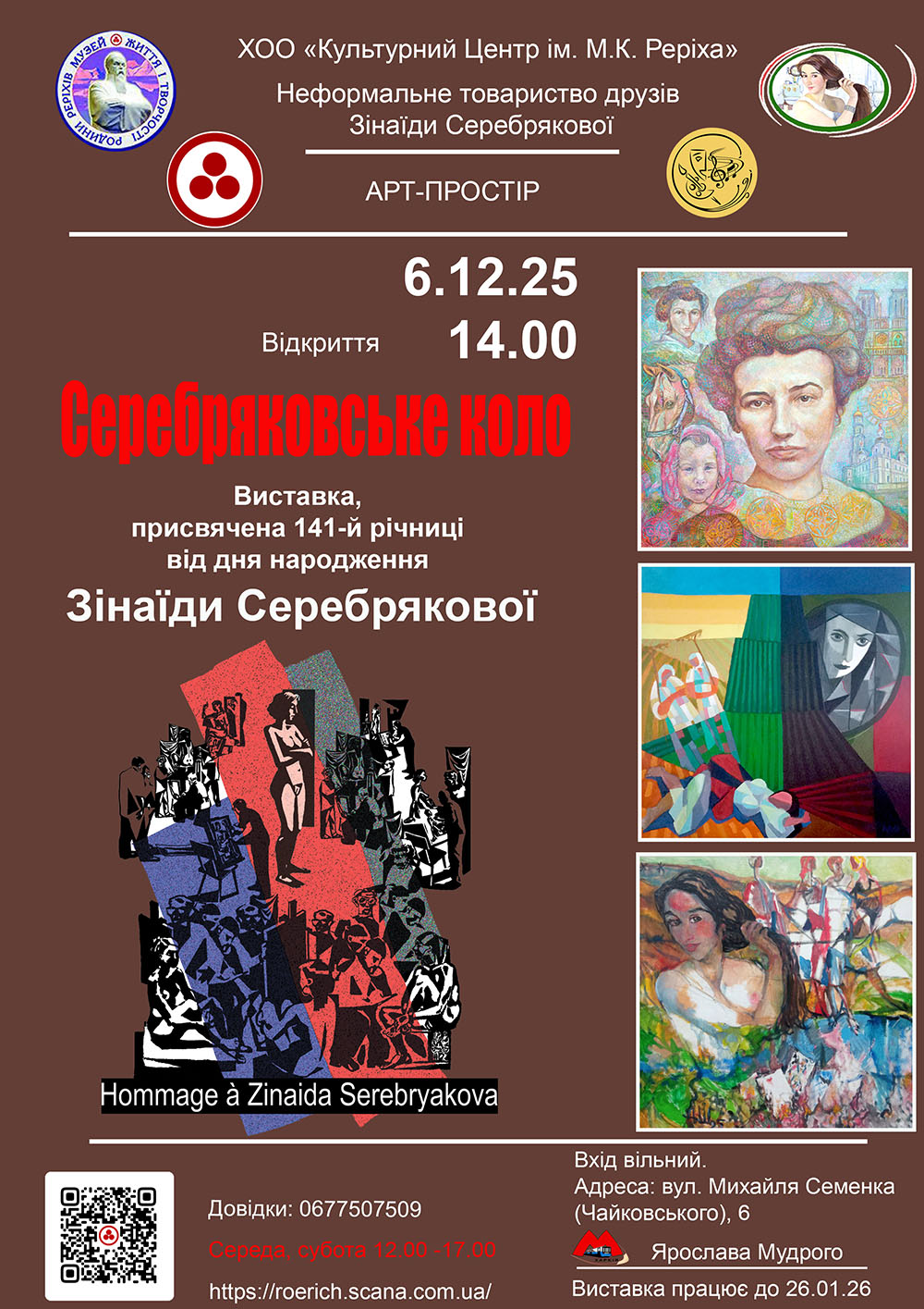 6 грудня 2025 р. в Арт-просторі ХОО «Культурний центр імені М.К. Реріха» відбулось відкриття художньої виставки "Серебряковське коло", присвяченої дню народження Зінаїди Серебрякової. Детальніше...